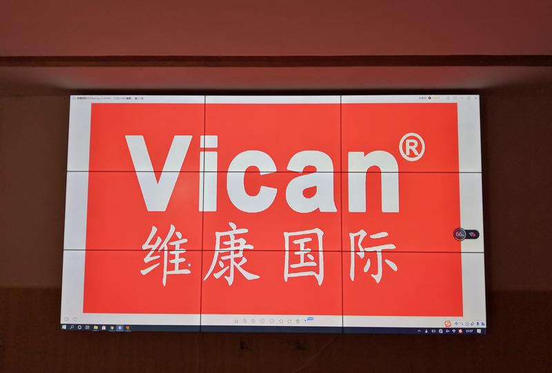 該案例中,維康國際為其提供一套液晶顯示屏,采用3x3拼接、55寸3.5mm液晶拼接屏,畫面顯示清晰、色彩好,拼縫也較小。