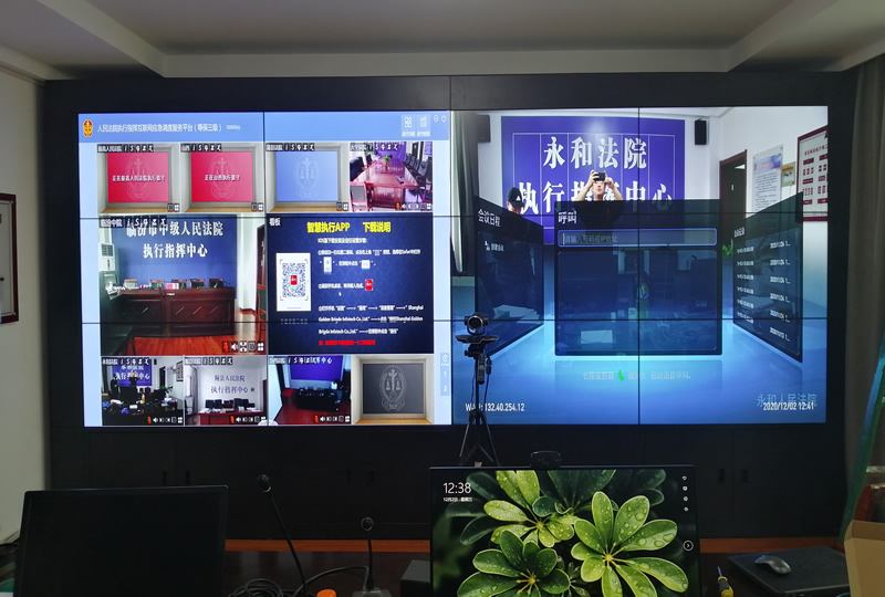 本案例中,維康國(guó)際為永和人們法院提高一套視頻會(huì)議顯示屏,主要由3行4列、55寸3.5mm液晶拼接屏組成,主要用來(lái)視頻會(huì)議顯示使用,大屏畫面高清顯示,產(chǎn)品性能穩(wěn)定。