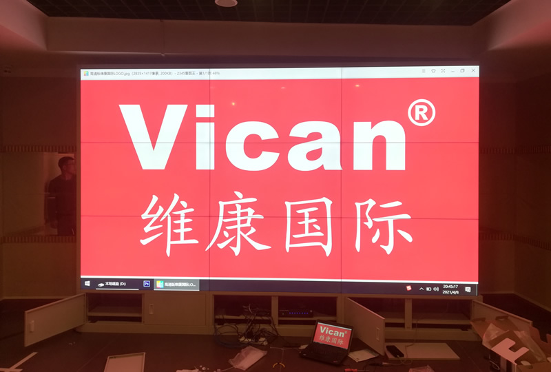本案例中,維康國際為深圳市前海灣某健身會所提供一套高清顯示屏,采用3x3拼接、55寸液晶拼接屏,屏體采用LG原裝面板,物理拼縫僅0.88mm,如上圖所示,大屏畫面清晰、有著很好的一體化顯示效果。
