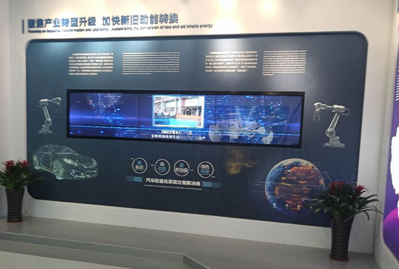 本案例中,維康國(guó)際為山東魏橋創(chuàng)業(yè)集團(tuán)的展廳提供了多套多形狀的LED顯示屏,如上圖所示,由梯形、圓形、長(zhǎng)方形拼接組成,大屏幕顯示清晰,視覺(jué)體驗(yàn)效果好。