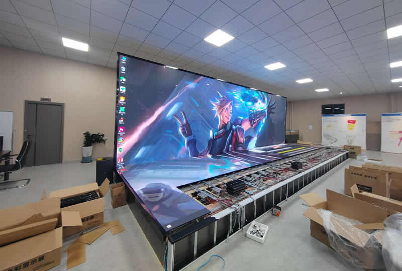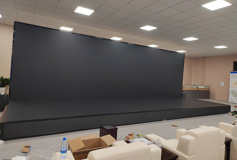 本案例中,維康國(guó)際為揭陽(yáng)市某企業(yè)形象展廳提供一套雙面LED顯示屏,采用90度內(nèi)折安裝,如上圖所示,大屏幕顯示清晰,色彩豐富。