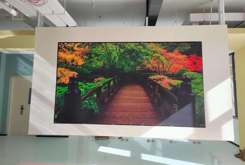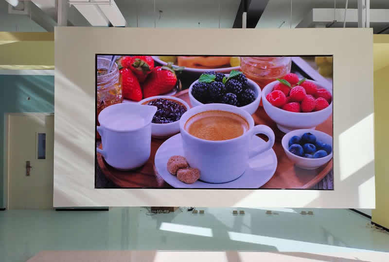 本案例中,維康國際為山西晉中某企業(yè)提供一套展廳LED顯示屏,采用P1.25的COB顯示屏,高清顯示,畫質清晰,懸掛式安裝,具有很好的視覺體驗效果。