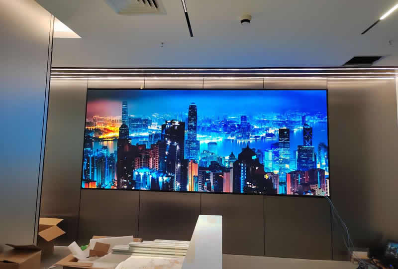 本案例中,維康國際為深圳南山智園某企業(yè)前臺提供一套LED大屏,采用P1.86全彩LED,顯示面積近10平方,大屏幕顯示清晰,視覺體驗效果好。