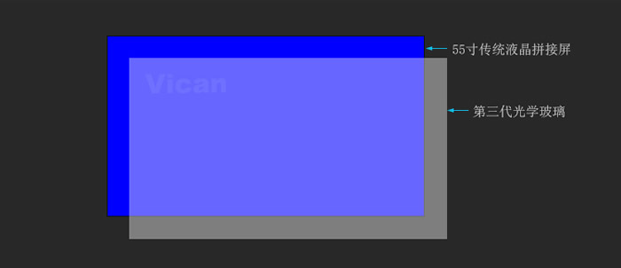 維康自主研發(fā)BFT技術(shù),采用優(yōu)良高分子高透明材料PMMA,利用光線(xiàn)折射原理,解決液晶屏拼接存在的物理黑邊問(wèn)題,實(shí)現(xiàn)屏幕之間的縫隙消隱,展現(xiàn)出屏幕巨大一體化顯示效果。