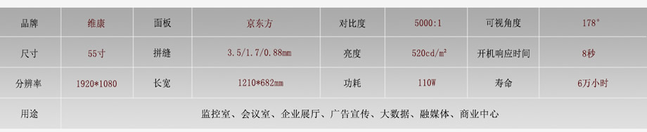 京東方液晶面板、性價比高、彩色佳,主要應用于監(jiān)控室、會議室、展廳等