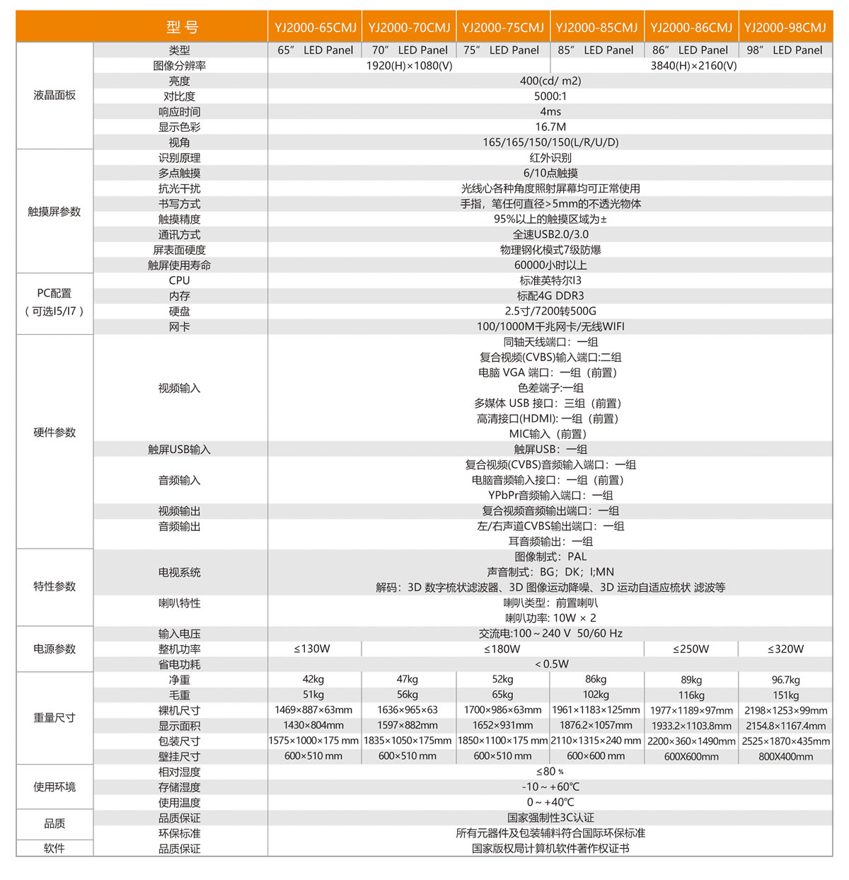 亮度:400cd/m2 分辨率:4K高清顯示:ALL-FHD系統(tǒng)全高清解決方案,4K 全高清顯示;